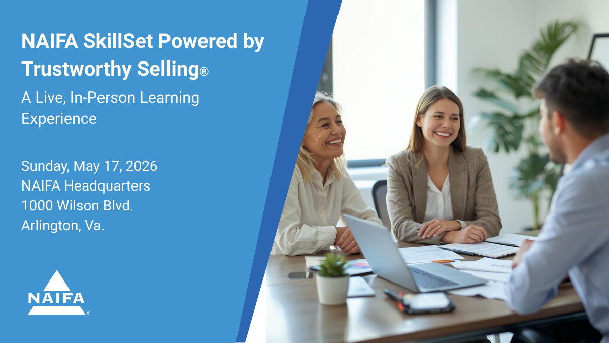 SkillSet powered by Trustworthy Selling® is an in-person, collaborative learning experience that delivers practical, field-tested skills that advisors can use immediately to grow their business, deepen client relationships, and elevate how they show up in client conversations. NAIFA members attending this year’s Congressional Conference have an extraordinary opportunity take advantage of this program at special session on Sunday, May 17 (the day before Congressional Conference) at NAIFA’s headquarters in Arlington, VA. NAIFA members receive $100 off of this SkillSet powered by Trustworthy Selling® experience. A separate registration is required, so act today!
