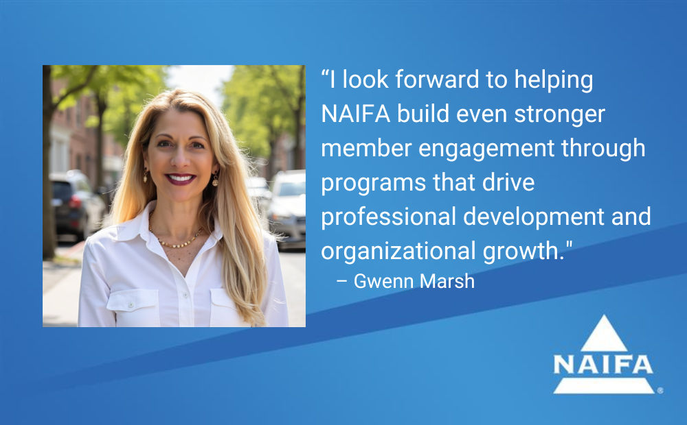 ARLINGTON, VA — With a keen aim to grow the number of financial professionals involved in the industry’s oldest and largest professional association, the National Association of Insurance and Financial Advisors (NAIFA) has appointed Gwenn Marsh as Senior Director, Group Membership Sales. This newly created role will help bolster NAIFA’s efforts at engaging the next generation of insurance and financial advisors in the profession.