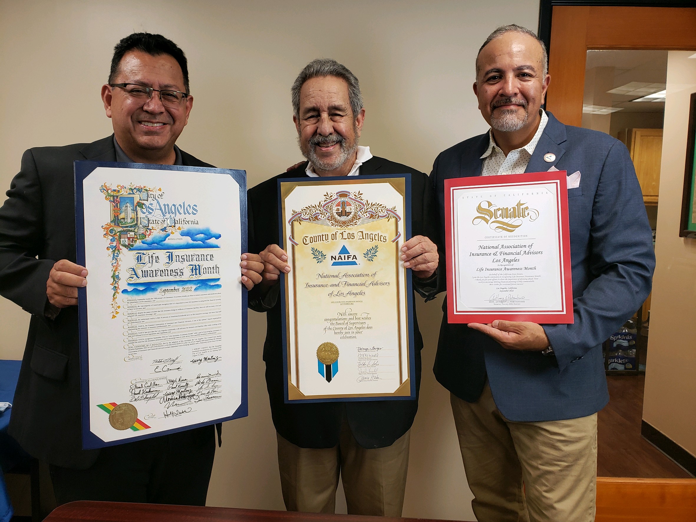 NAIFA-Los Angeles members have worked with local and state elected representatives to get official recognition of September as Life Insurance Awareness Month (LIAM). The City of Los Angeles, County of Los Angeles, and California State Senate have all issued resolutions or certificates recognizing NAIFA and LIAM.