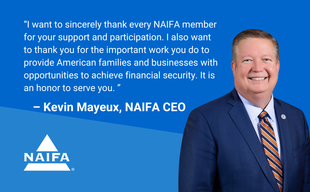 As we close out a successful 2025, I am excited about all that 2026 has in store. I want to sincerely thank every NAIFA member for your support and participation. I also want to thank you for the important work you do to provide American families and businesses with opportunities to achieve financial security. It is an honor to serve you. As NAIFA’s CEO, and on behalf of our Board of Trustees and professional staff, I wish each of you a happy, healthy, and successful year.